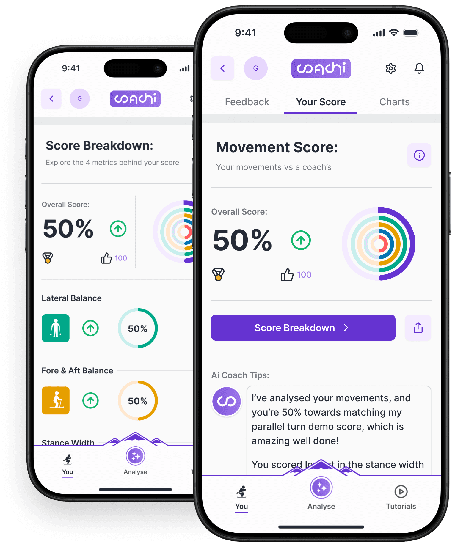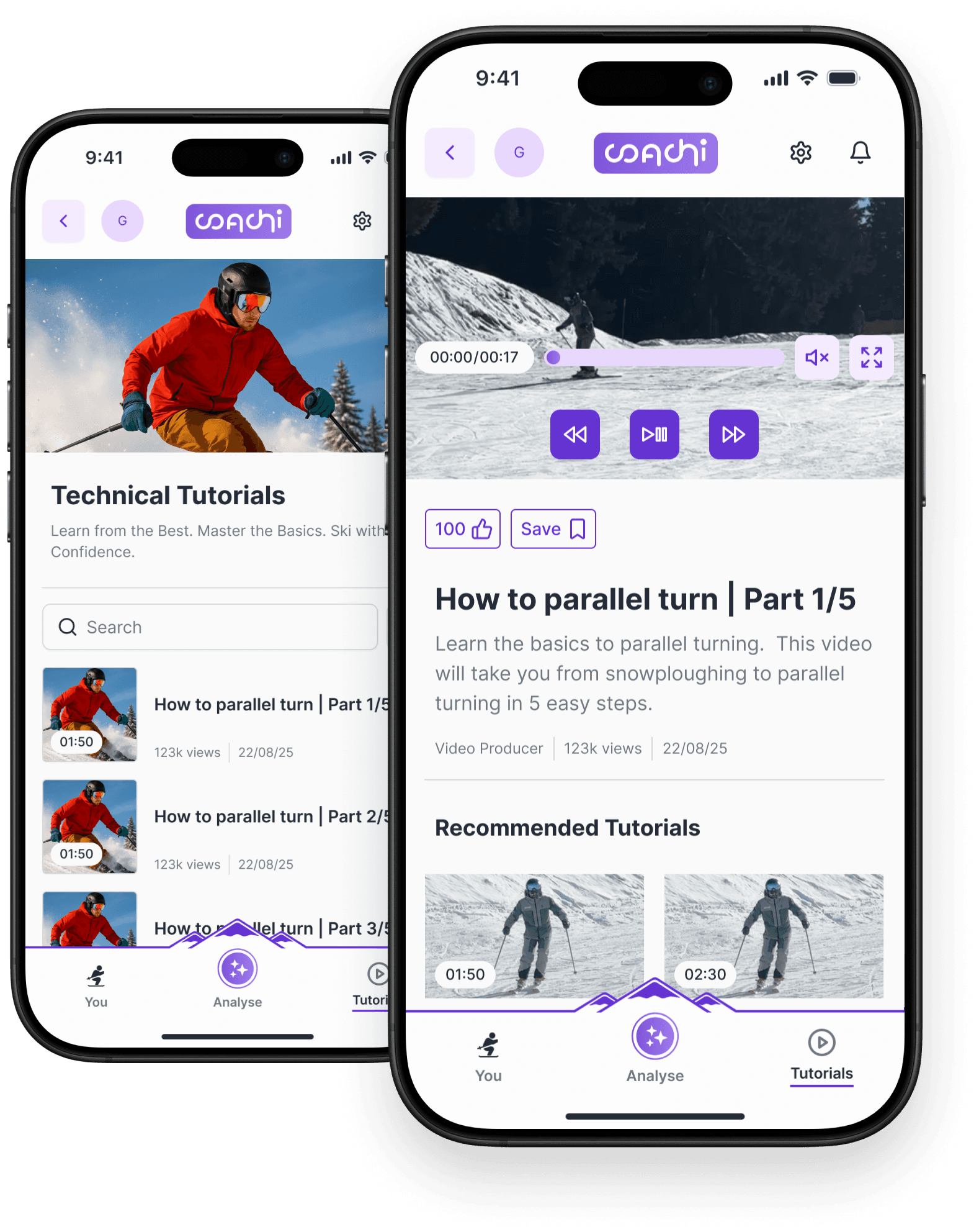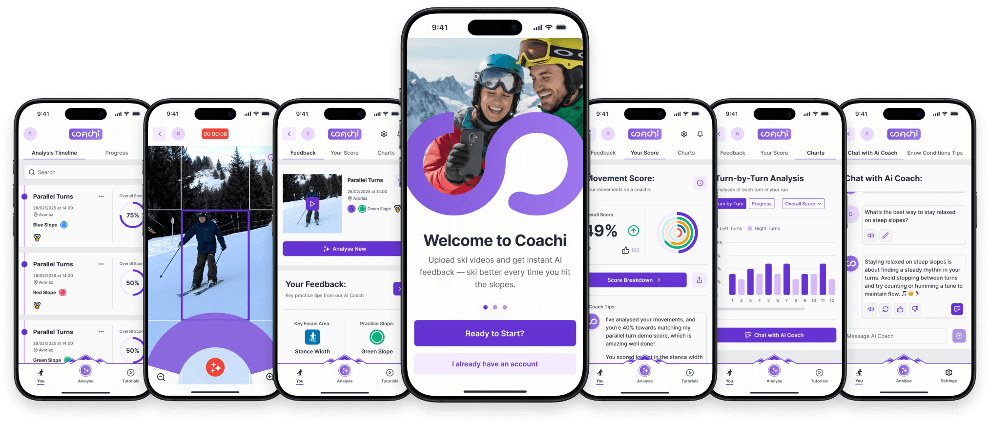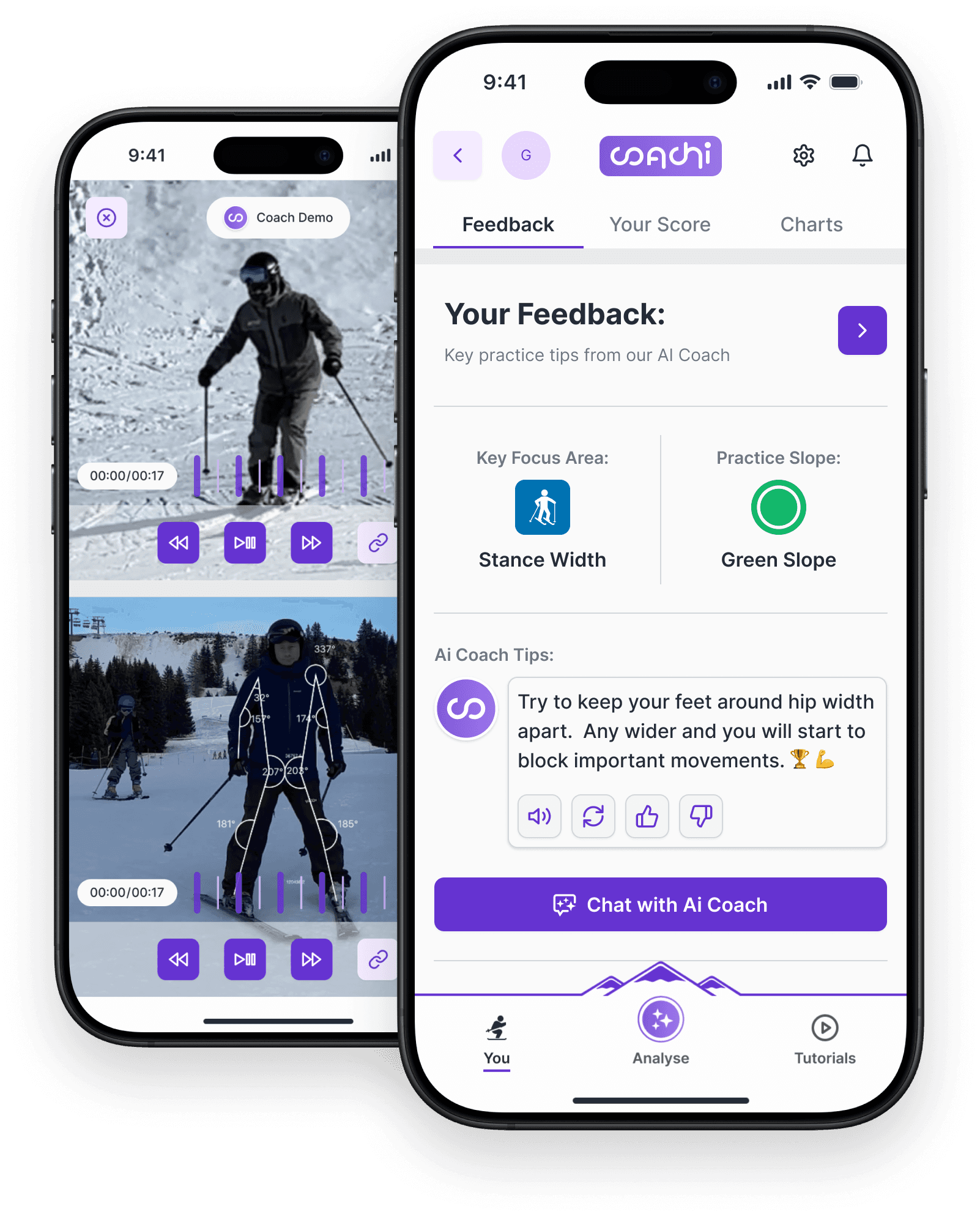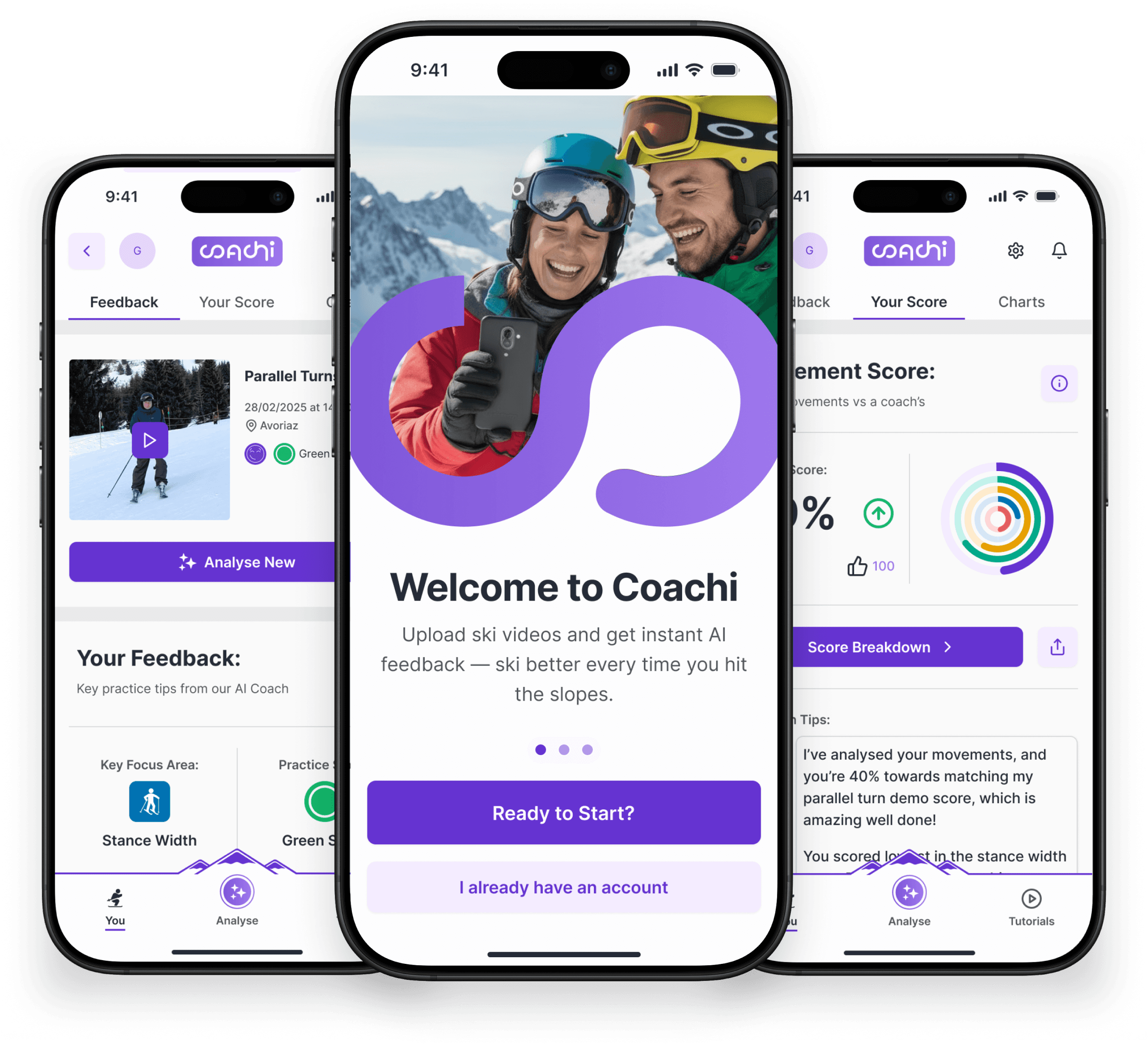 Coachi analyses your technique, tracks your progress, and guides you to your best skiing yet.