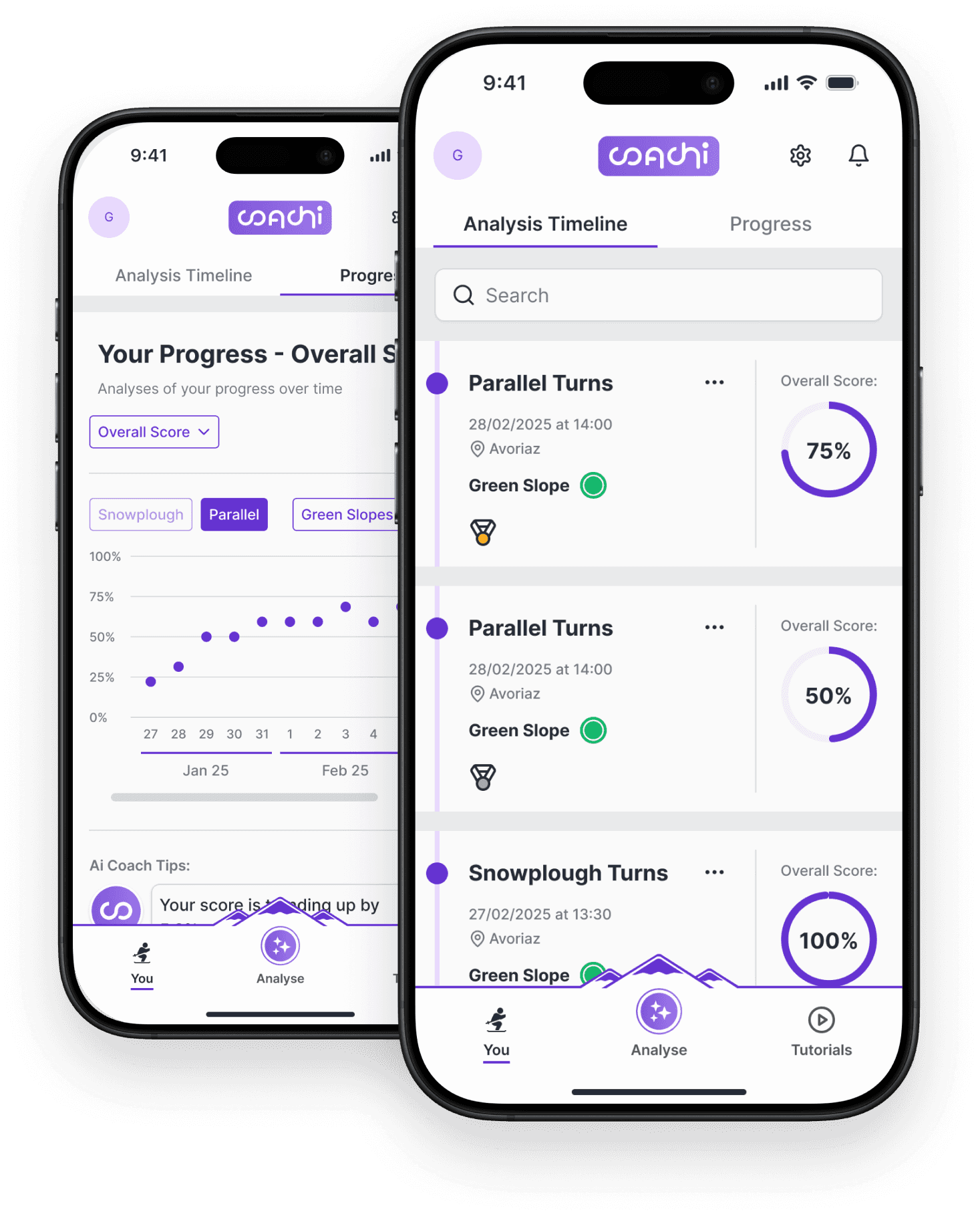 From your first snowplough to smoother parallels, Coachi helps you see your growth over time — so progress feels real, not random.